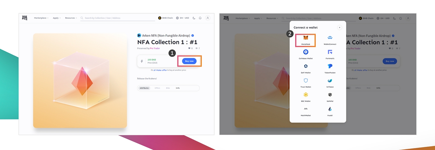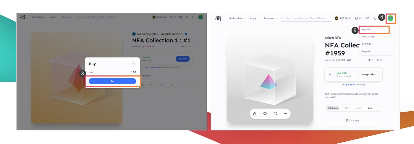 Visit Arken NFA (Non-Fungible Airdrop)’s Official Account on TofuNFT: https://tofunft.com/collection/arken-nfa/items. Select the specific NFA that you want to buy.