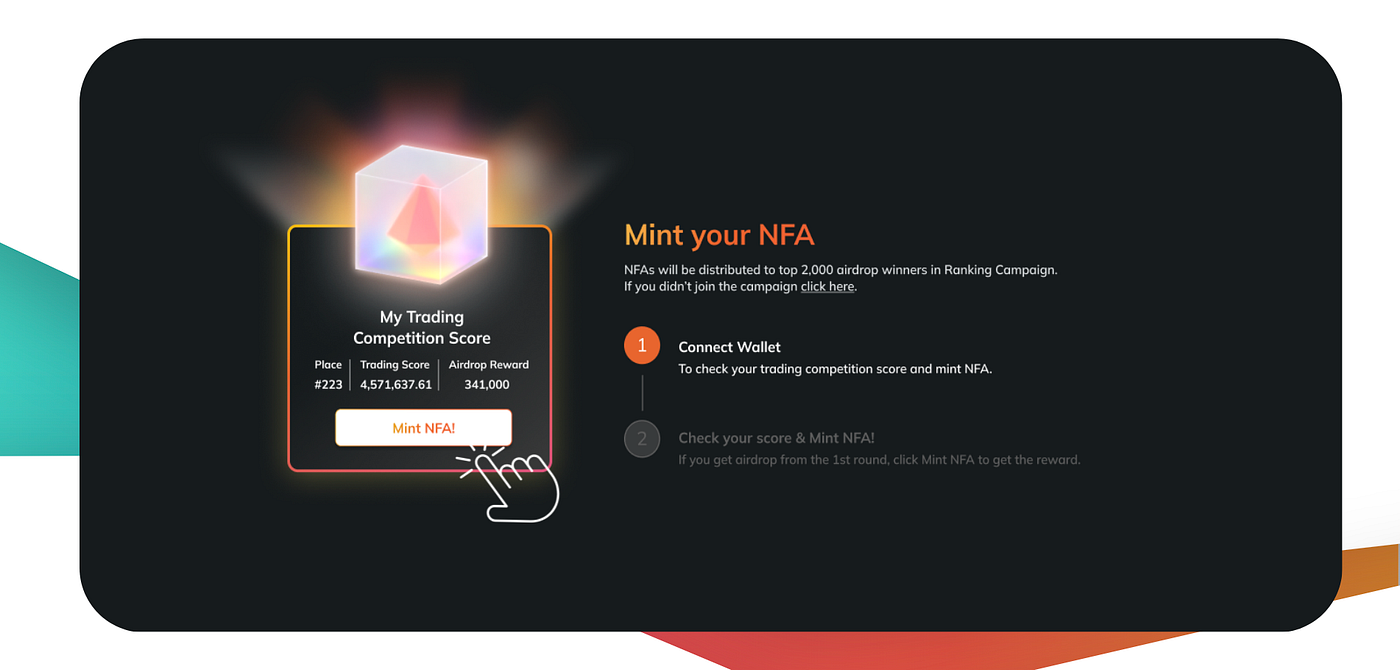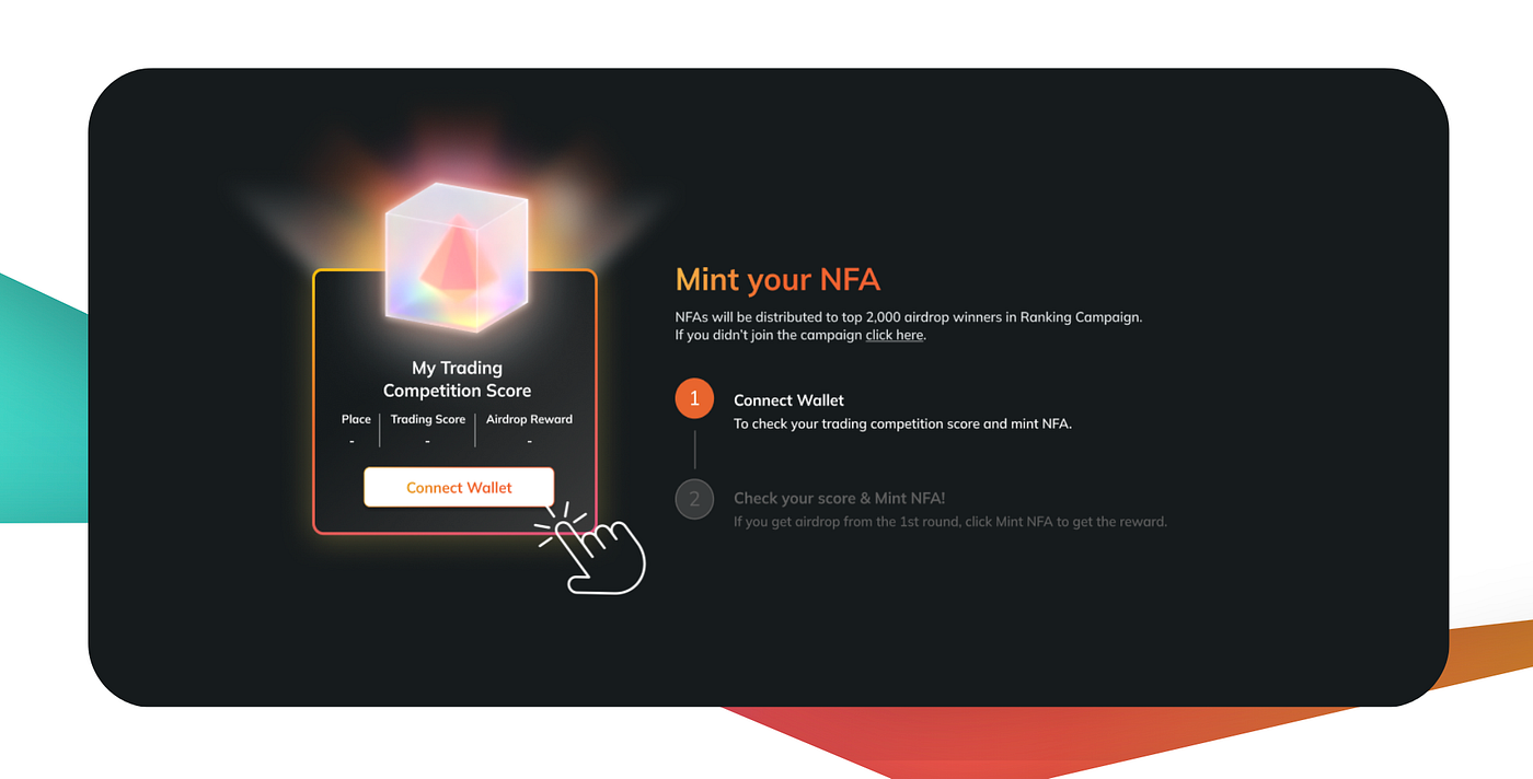 Connect Wallet (make sure that the wallet you are using is the same one used for participating in Airdrop V1.0 Trading Competition.) NFA is available only on BSC Network.